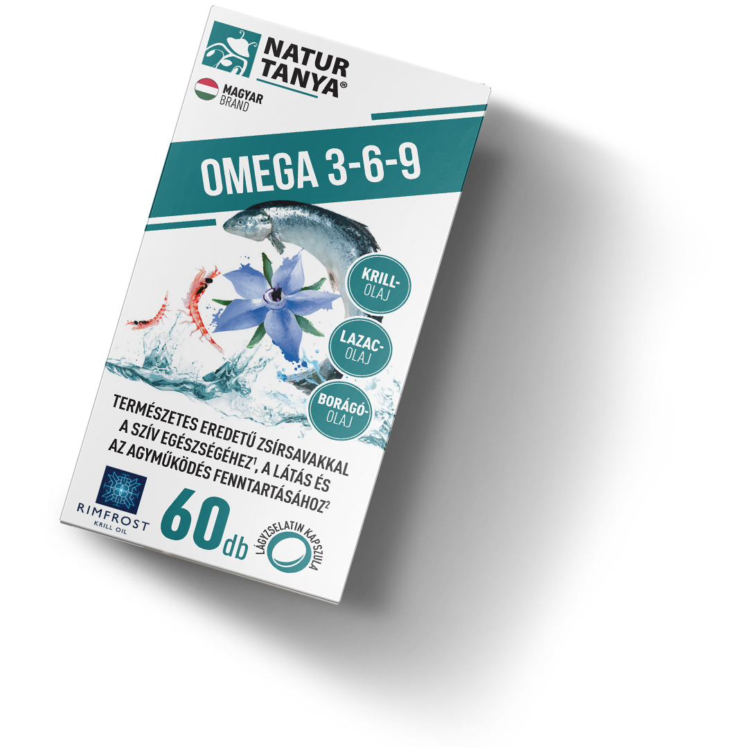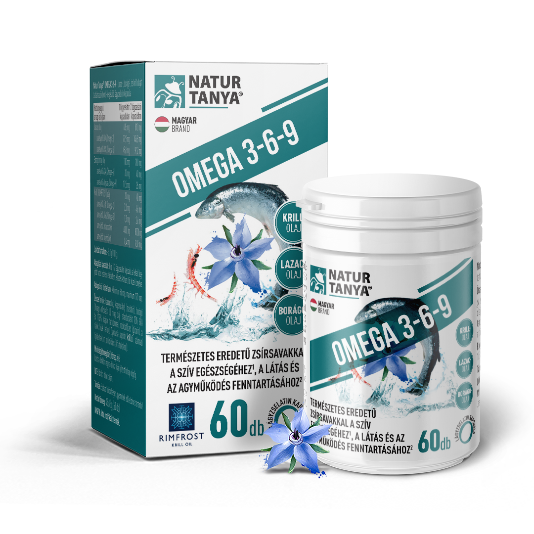 A Natur Tanya® Omega 3-6-9 komplex, a zsírsavakat 3 féle természetes olajforrásból biztosítja; borágó-, krill és lazacolaj.