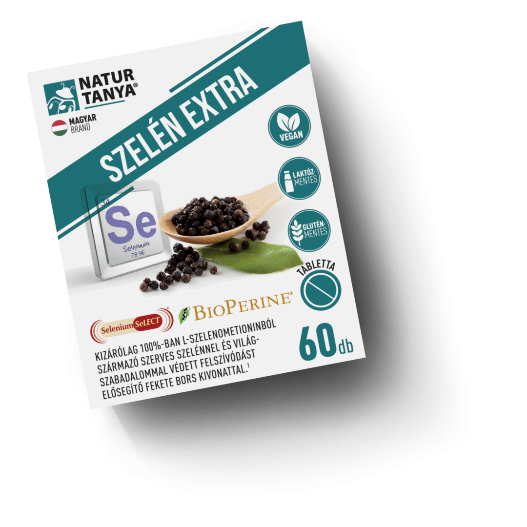Natur Tanya® SZELÉN EXTRA – 100% szerves szelén és világszabadalommal védett biohasznosulást fokozó, természetes fekete bors kivonat